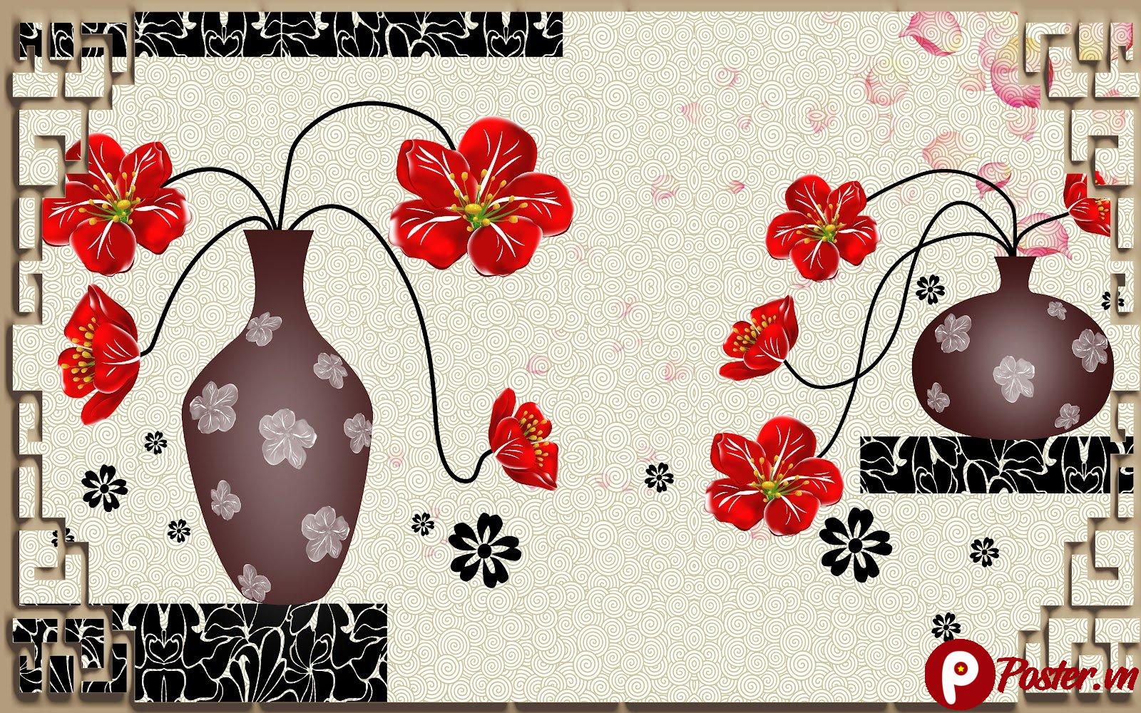 Trong thiết kế nội thất đương đại, tranh dán tường không chỉ đơn thuần là vật liệu trang trí bề mặt mà còn là linh hồn giúp định hình phong cách cho toàn bộ không gian sống. Mẫu tranh dán tường bình hoa (Mã số 73) tại Poster.vn là một sự kết hợp hoàn hảo giữa nét tĩnh lặng, quý phái của nghệ thuật Á Đông cổ điển và sự tinh giản của phong cách hiện đại. Bức tranh tập trung vào hình ảnh hai chiếc bình gốm màu nâu trầm mặc, cắm những cành hoa đỏ rực rỡ, tạo nên một điểm nhấn thị giác mạnh mẽ nhưng vẫn đầy tinh tế.