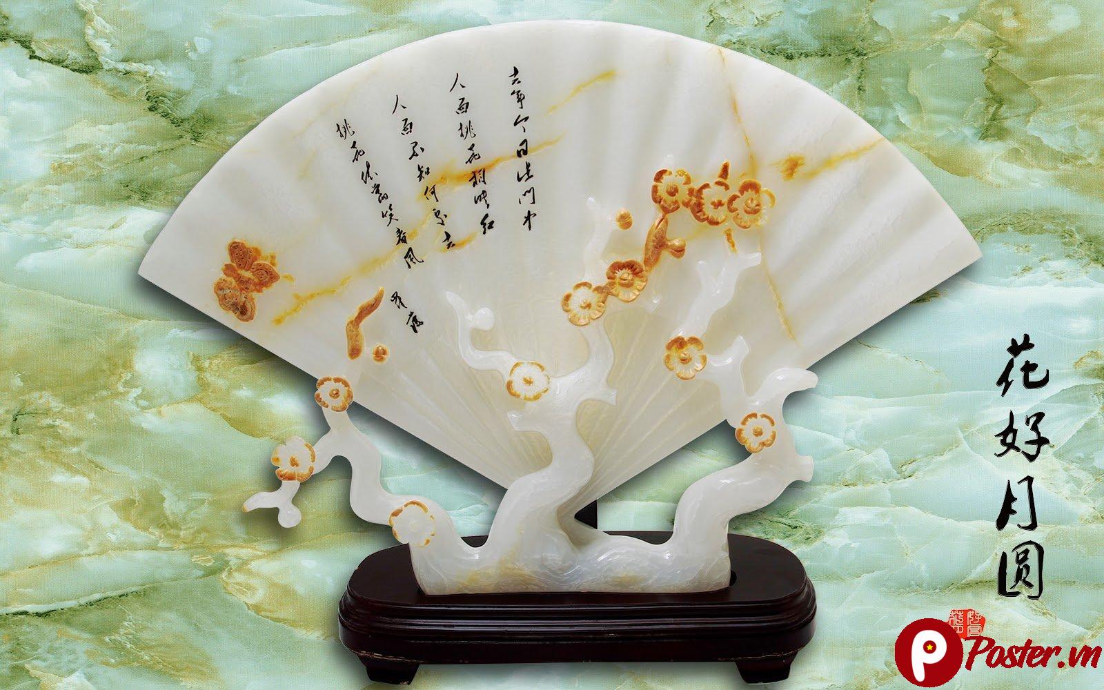 - Chủ đề: Nghệ thuật điêu khắc, quạt ngọc, hoa mai, phong cách cổ điển.