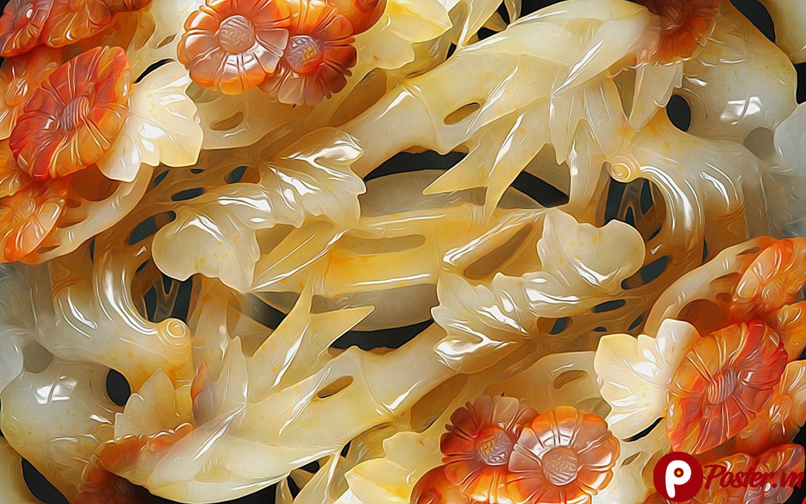 Trong văn hóa Á Đông, các loài hoa được chạm khắc trên đá thường mang ý nghĩa về sự phồn vinh, phú quý và bình an. Sự xuất hiện của các tán lá đan xen tượng trưng cho sự sinh sôi nảy nở và sức sống bền bỉ. Màu hổ phách và cam đỏ không chỉ làm nổi bật tác phẩm mà còn mang năng lượng của hành Hỏa và Thổ, giúp thu hút tài lộc và may mắn cho gia chủ khi được sử dụng làm vật phẩm trang trí trong nhà.