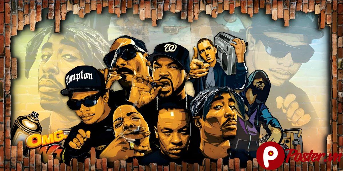 Mẫu tranh trang trí quán cafe này được thiết kế với phong cách hip-hop/rap cổ điển, tập hợp những gương mặt huyền thoại trong làng âm nhạc. Sự kết hợp giữa các nhân vật biểu tượng và hiệu ứng graffiti, tường gạch vỡ tạo nên một tổng thể mạnh mẽ, cá tính và đầy chất nghệ thuật. Đây không chỉ là một bức tranh, mà còn là một câu chuyện về văn hóa âm nhạc, chắc chắn sẽ thu hút sự chú ý của những người yêu thích dòng nhạc này.
