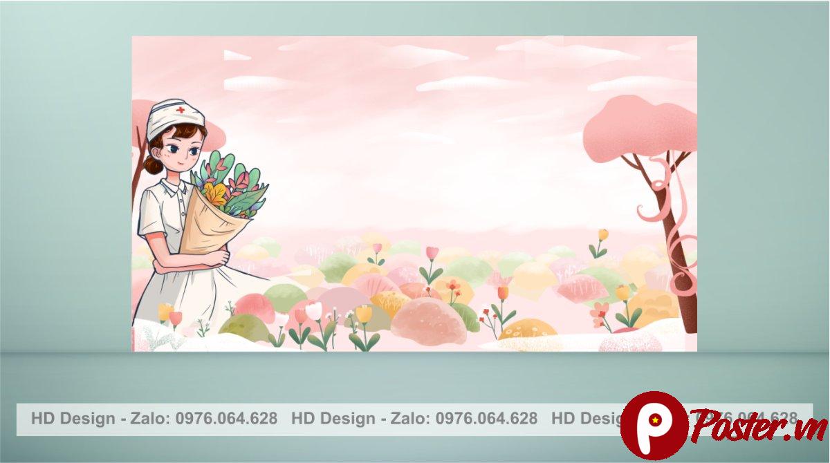 Vector Bác Sĩ Nữ Dễ Thương. Tải ngay vector bác sĩ nữ dễ thương, hình ảnh y tá hoạt hình cầm hoa với background hồng mơ mộng. Thiết kế độc đáo, phù hợp cho ấn phẩm y tế, giáo dục tại Poster.vn.