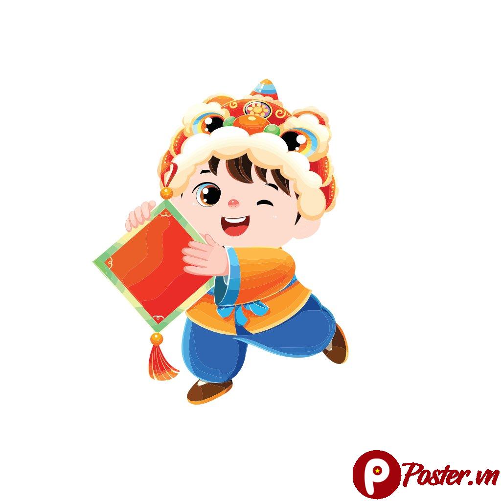 Hình ảnh bé trai đội mũ múa lân, tay cầm bao lì xì đỏ tươi, nháy mắt tinh nghịch là biểu tượng hoàn hảo cho sự may mắn, tài lộc và niềm vui trong dịp Tết Nguyên Đán. Thiết kế này không chỉ thu hút ánh nhìn mà còn truyền tải thông điệp về một năm mới an lành, thịnh vượng và tràn đầy tiếng cười.