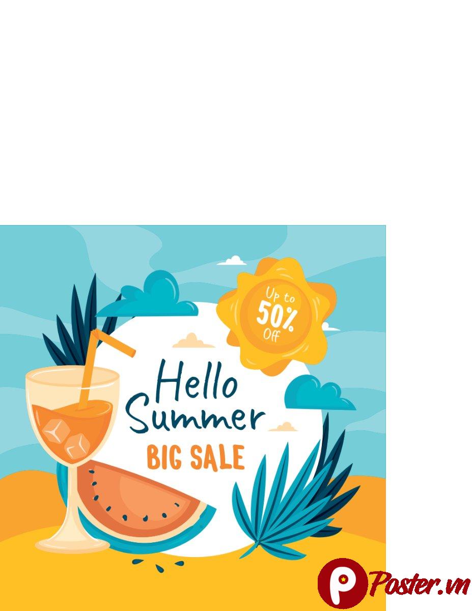 - Thông điệp rõ ràng: Dòng chữ “Hello Summer Big Sale” và biểu tượng “Up to 50% OFF” nổi bật, truyền tải thông điệp khuyến mãi một cách trực tiếp và hiệu quả.
