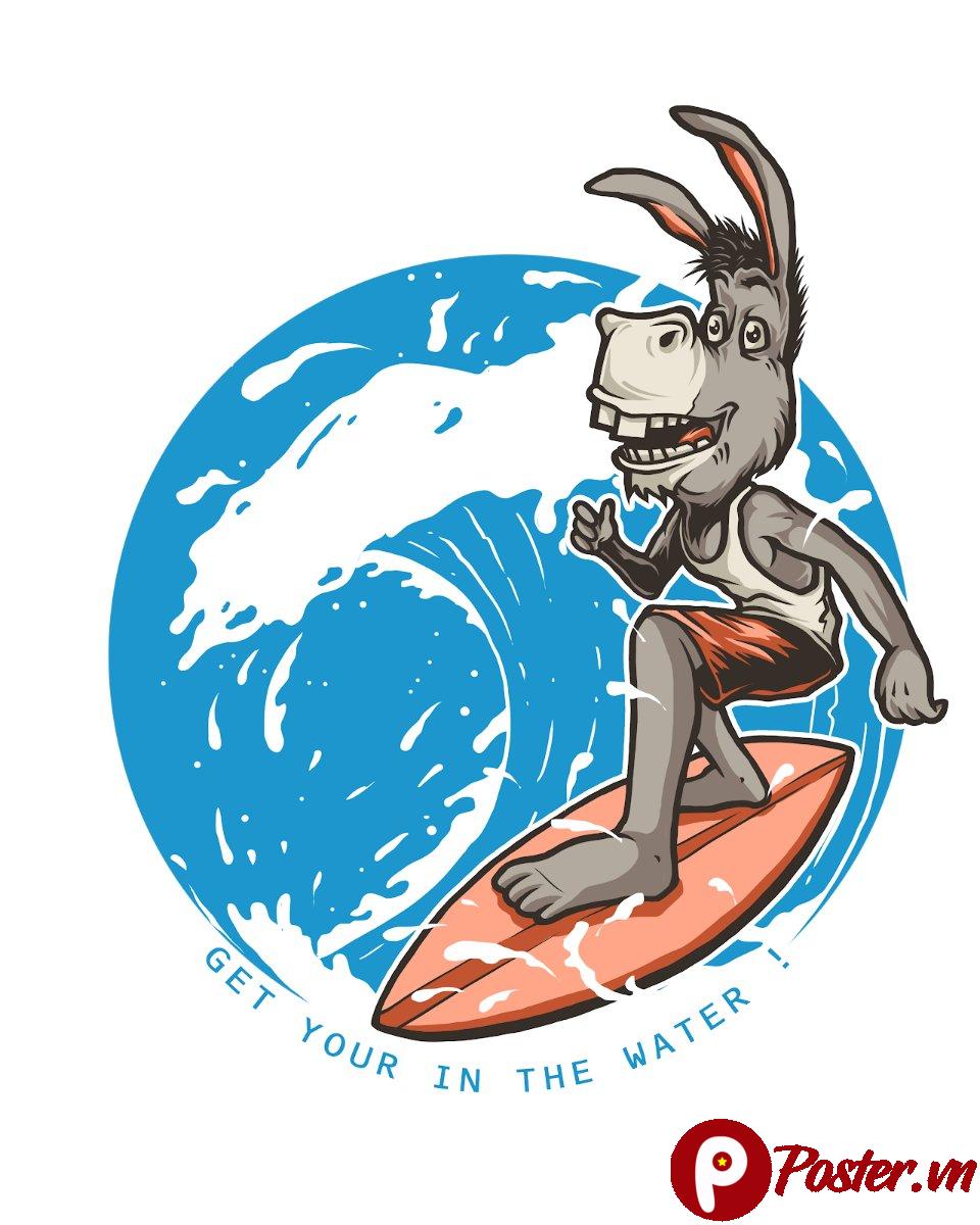 Vector Chú Lừa Lướt Sóng. Khám phá vector chú lừa lướt sóng độc đáo và hài hước tại Poster.vn. Thiết kế sáng tạo này hoàn hảo cho áo thun, poster, và các ấn phẩm quảng cáo mang phong cách vui nhộn, trẻ trung và năng động.