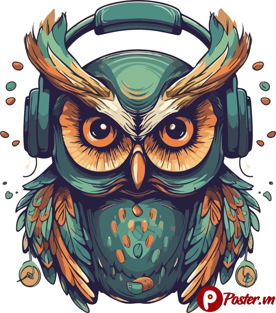 Hình ảnh chú cú, biểu tượng của sự thông thái và bí ẩn, nay được khoác lên mình một diện mạo mới mẻ và đầy cá tính với chiếc tai nghe. Phong cách vintage được thể hiện qua cách phối màu trầm ấm, các đường nét đồ họa mềm mại nhưng vẫn giữ được sự sắc sảo, tạo nên một tổng thể hài hòa và thu hút. Đây không chỉ là một hình ảnh đơn thuần mà còn là một tác phẩm nghệ thuật, có khả năng kể một câu chuyện riêng, thu hút ánh nhìn ngay từ cái chạm đầu tiên.