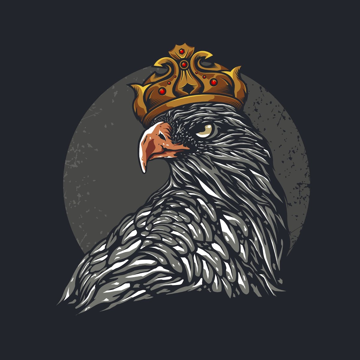 - Thiết kế độc đáo và ấn tượng: Hình ảnh đại bàng được khắc họa chi tiết, từ bộ lông sắc sảo đến ánh mắt sắc bén, toát lên vẻ uy nghi. Vương miện được thiết kế tinh xảo, làm nổi bật sự vương giả và quyền lực.