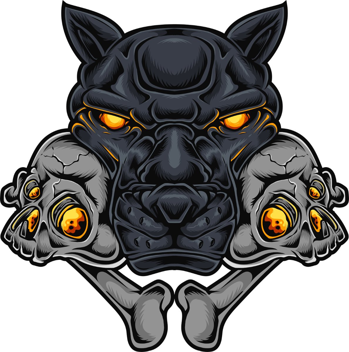 Vector Đầu Chó Sói Đồ Họa Kinh Dị. Khám phá vector đầu chó sói kinh dị với đôi mắt rực lửa và chi tiết hộp sọ ấn tượng, lý tưởng cho các dự án thiết kế mạnh mẽ và độc đáo. Tải ngay tại Poster.vn!