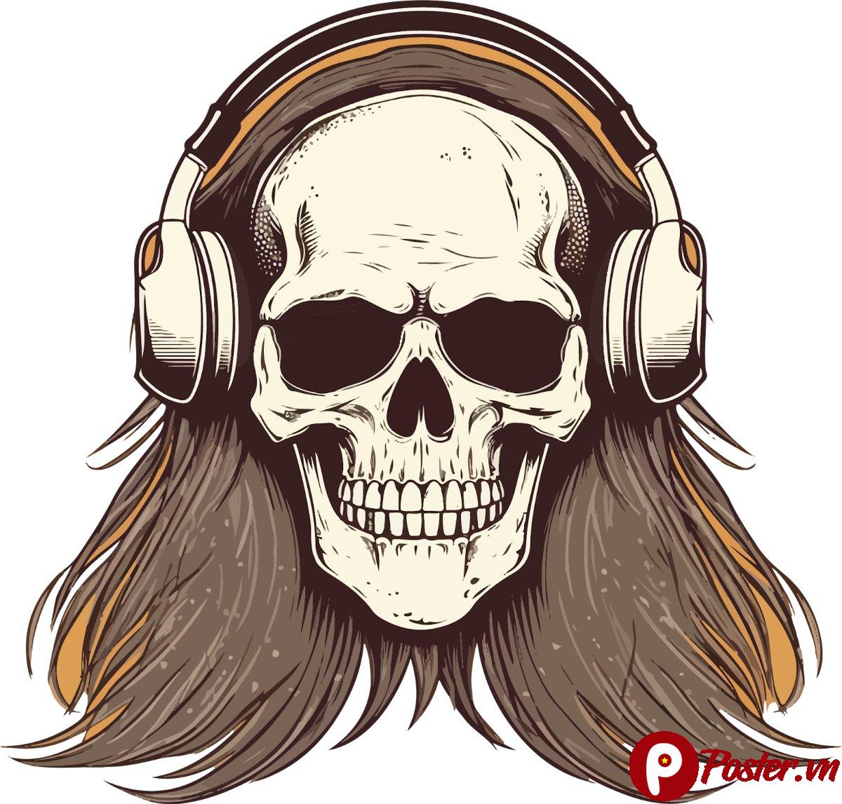 Vector Đầu Lâu Đeo Tai Nghe Cổ Điển: Biểu Tượng Phong Cách Rock & Cá Tính