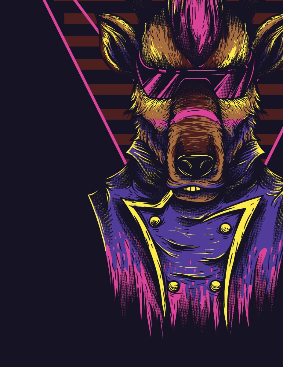 Hình ảnh chú hươu với phong cách retro, đeo kính râm và khoác áo jacket sành điệu, không chỉ là một biểu tượng thời trang mà còn là một tuyên ngôn cá tính. Thiết kế này kết hợp hài hòa giữa nét hoang dã của động vật và sự phá cách của văn hóa retro, tạo nên một tổng thể vừa mạnh mẽ, vừa cuốn hút. Đây là lựa chọn lý tưởng cho những ai muốn tạo ra các sản phẩm có tính thẩm mỹ cao và mang đậm dấu ấn riêng.