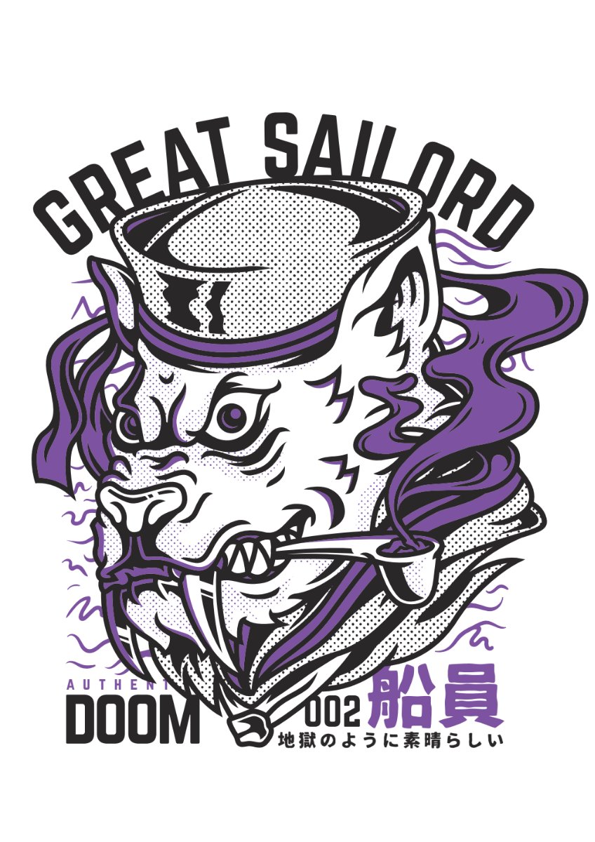 Hình ảnh vector zombie “ZOMBIE (3)” nổi bật với phong cách minh họa mạnh mẽ, sử dụng các đường nét sắc sảo và hiệu ứng đổ bóng tinh tế. Nhân vật zombie được thể hiện với biểu cảm dữ tợn, đôi mắt rực lửa và hàm răng sắc nhọn, tạo cảm giác rùng rợn nhưng không kém phần nghệ thuật. Chiếc mũ thủy thủ và chiếc tẩu thuốc là những chi tiết độc đáo, mang đến một nét chấm phá bất ngờ, kết hợp giữa yếu tố kinh dị và phong cách cổ điển. Màu sắc chủ đạo là tím và trắng đen, tạo nên sự tương phản mạnh mẽ và dễ dàng phối hợp với nhiều tông màu khác trong thiết kế. Các chi tiết khói thuốc màu tím càng làm tăng thêm vẻ bí ẩn và ma mị cho tổng thể.