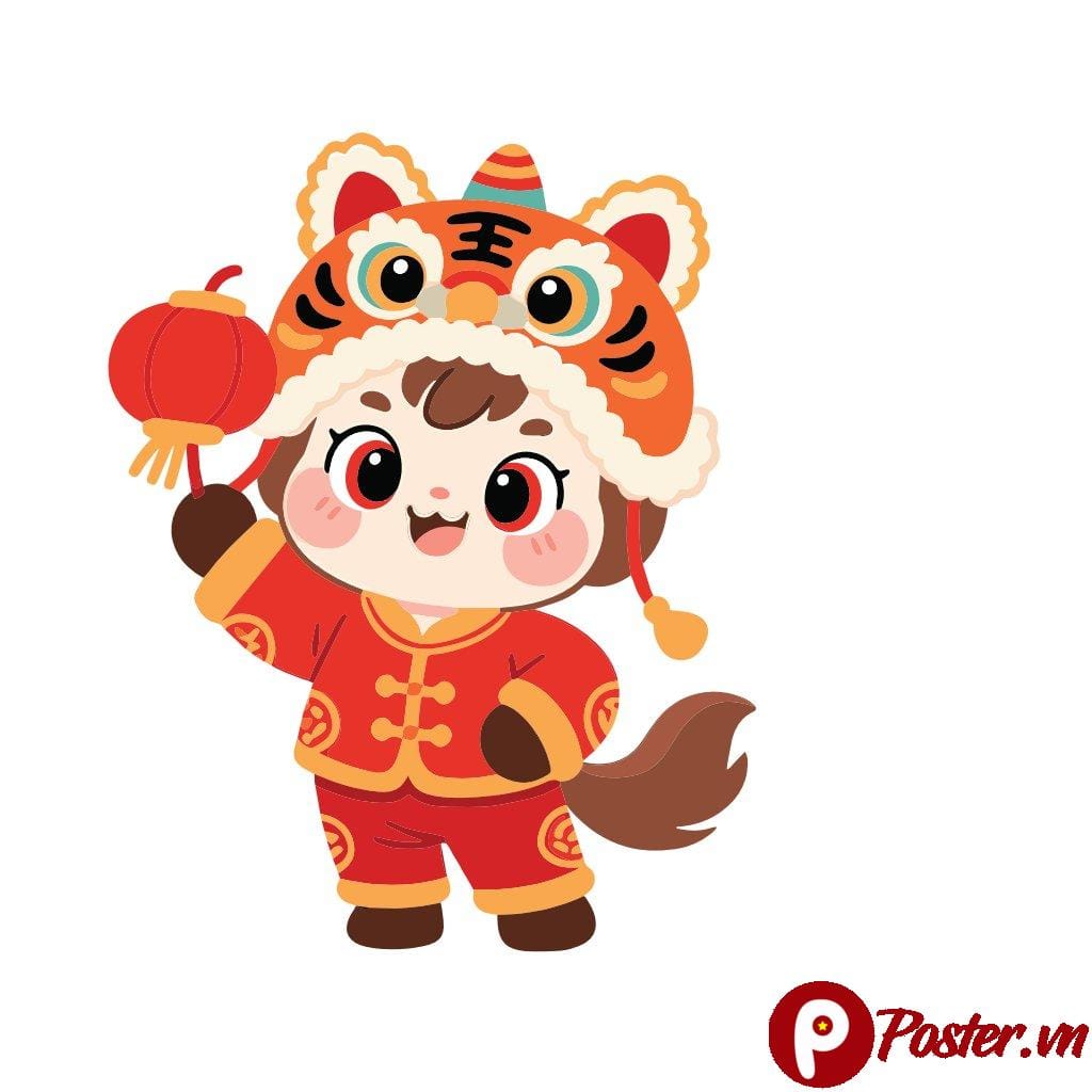 Hoàn toàn phù hợp. Mặc dù có những chi tiết mang đậm dấu ấn văn hóa Á Đông nói chung (như mũ hổ, đèn lồng, trang phục cách điệu), hình ảnh em bé chibi tươi vui này vẫn rất dễ dàng được tích hợp vào các thiết kế mừng Tết Nguyên Đán của Việt Nam, mang lại không khí vui tươi, may mắn và ấm cúng cho mọi ấn phẩm.