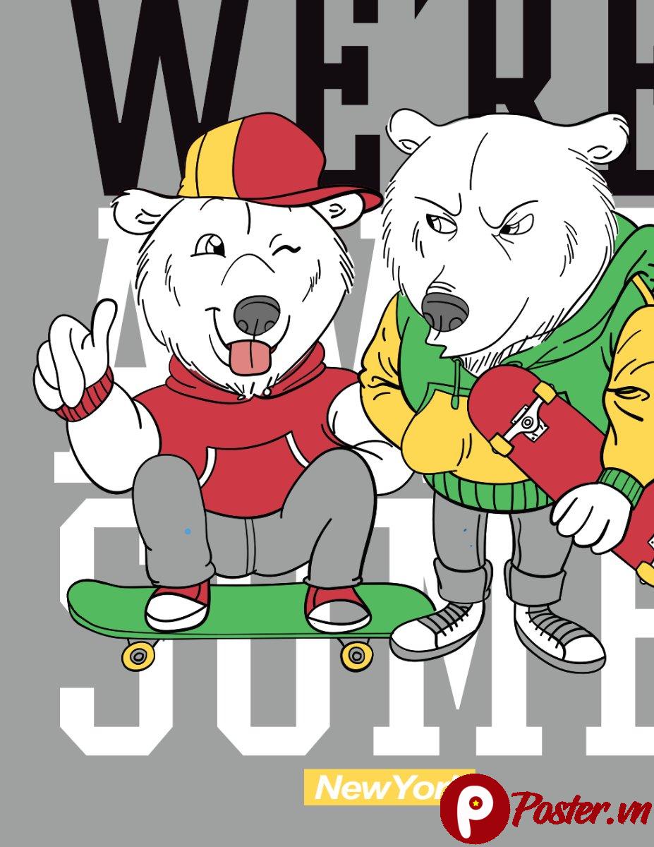 Thiết kế này không chỉ là một hình ảnh đơn thuần mà còn là một tuyên ngôn về phong cách. Với hai chú gấu trắng được cách điệu hóa, một chú đội mũ lưỡi trai đỏ và một chú đội mũ hoodie xanh lá, cùng với ván trượt và dòng chữ “New York” nổi bật, tài nguyên này mang đến một luồng gió mới mẻ và hiện đại. Sự kết hợp giữa nét vẽ tay ngộ nghĩnh và phong cách đường phố tạo nên một tổng thể hài hòa, dễ dàng thu hút sự chú ý.