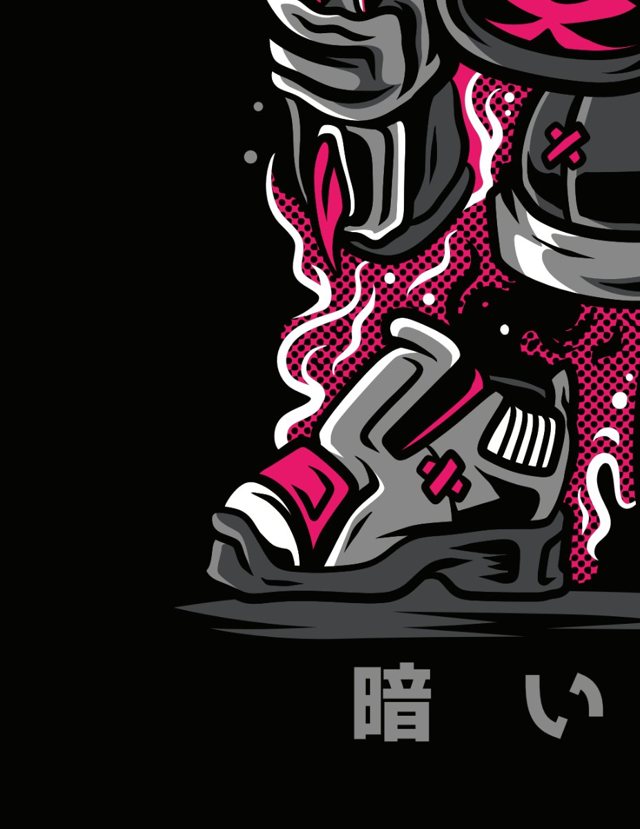 Mẫu vector này rất phù hợp cho các dự án thiết kế áo thun, poster, banner, đồ họa game, minh họa sách, ấn phẩm truyền thông, và bất kỳ dự án nào cần yếu tố đồ họa mang phong cách cyberpunk mạnh mẽ và cá tính.