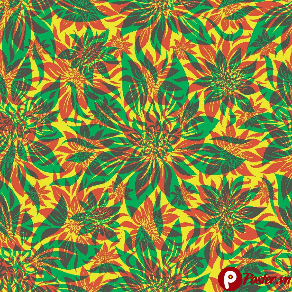 - Thiết Kế Độc Đáo: Các họa tiết hoa lá được sắp xếp ngẫu nhiên nhưng hài hòa, tạo ra một bố cục động và cuốn hút. Sự chồng lớp màu sắc tạo hiệu ứng thị giác mạnh mẽ, khiến mẫu hoa văn trở nên sống động và có chiều sâu.