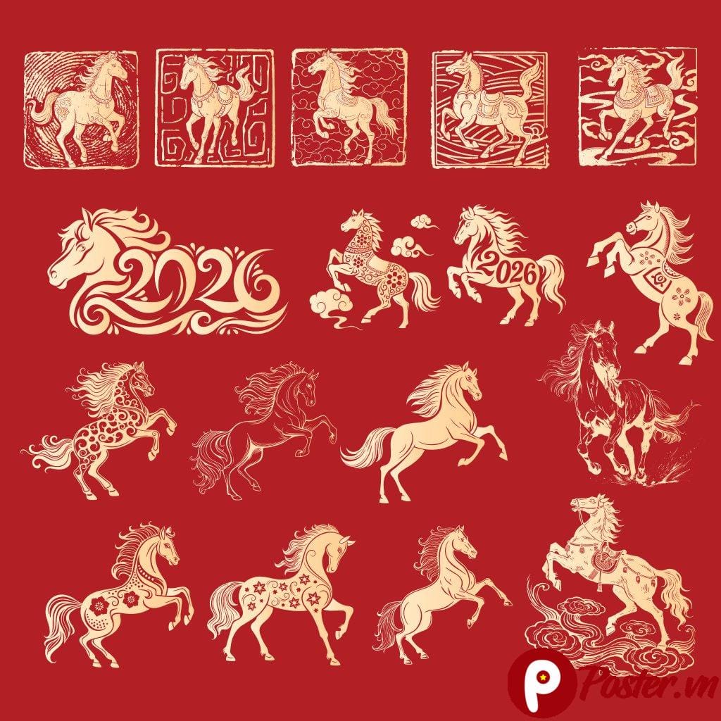 Năm 2026 là năm Bính Ngọ, một năm mang đậm dấu ấn của sự mạnh mẽ, bứt phá và thành công. Trong văn hóa Á Đông nói chung và Việt Nam nói riêng, hình tượng con Ngựa (Ngọ) luôn gắn liền với câu chúc "Mã đáo thành công", tượng trưng cho sự thăng tiến, tốc độ và lòng kiên trì bền bỉ. Để chuẩn bị cho mùa thiết kế Tết sắp tới, Poster.vn hân hạnh giới thiệu bộ tài nguyên Vector Ngựa Bính Ngọ 2026 với thiết kế tinh xảo, đậm chất nghệ thuật truyền thống.