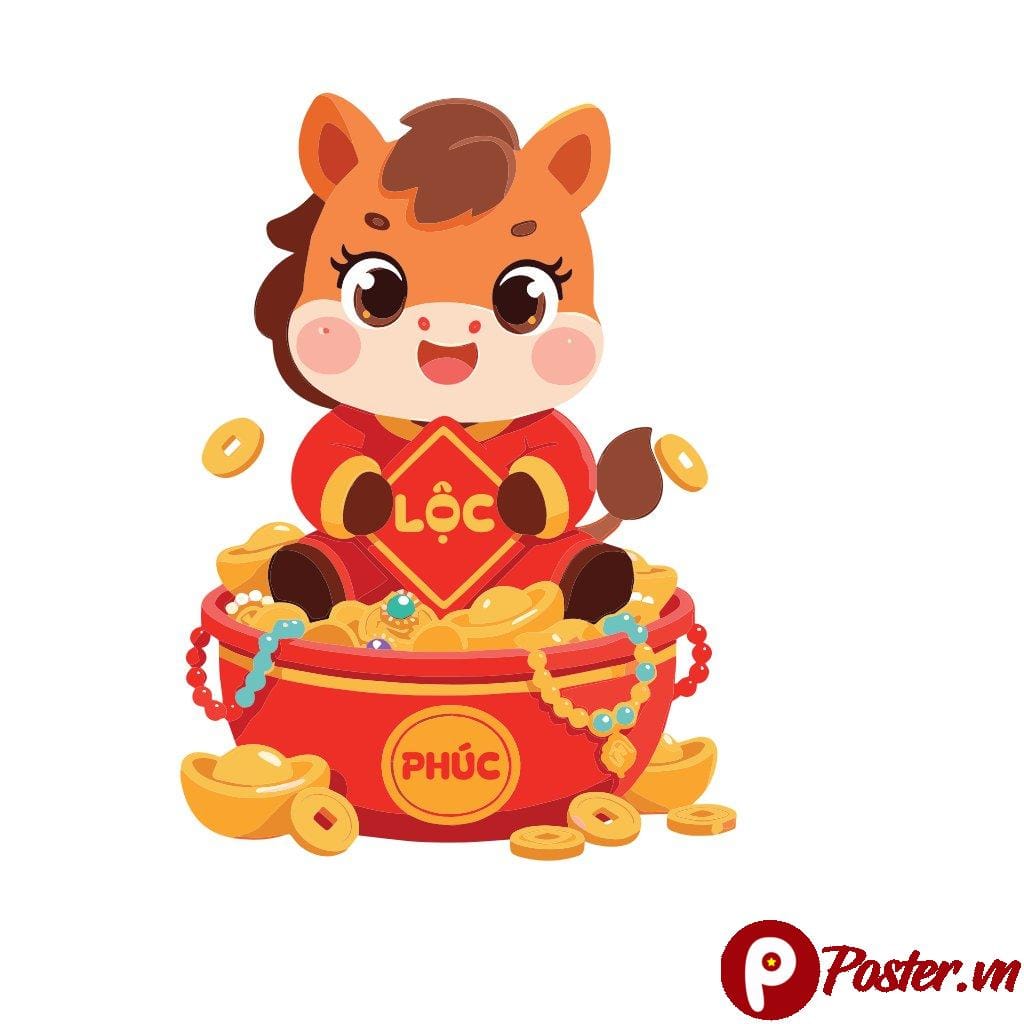 Chú ngựa nhỏ nhắn, bầu bĩnh trong thiết kế không chỉ toát lên vẻ ngộ nghĩnh, thân thiện mà còn mang theo thông điệp sâu sắc về sự sung túc. Ngồi gọn gàng trong chiếc bát vàng đầy ắp kim nguyên bảo và đồng xu, chú ngựa còn ôm trên tay chữ “LỘC” và dưới chân là chữ “PHÚC” – những ước nguyện không thể thiếu trong mỗi dịp Tết đến xuân về. Hãy cùng Poster.vn khám phá chi tiết về tài nguyên vector tuyệt vời này và cách bạn có thể ứng dụng nó để tạo nên những tác phẩm thiết kế đầy ấn tượng!
