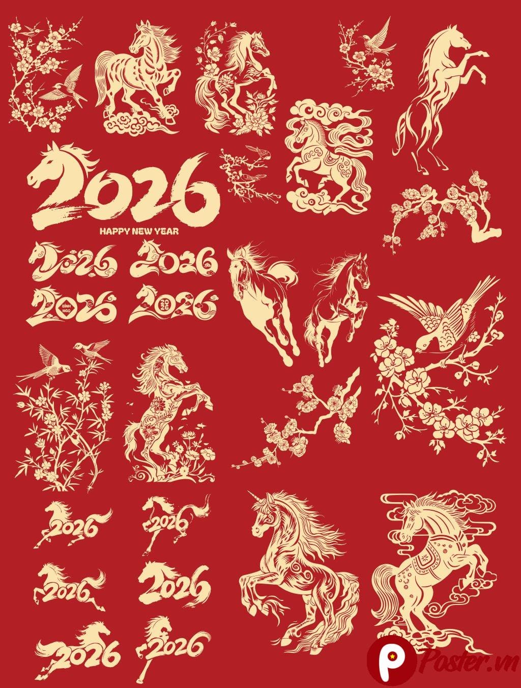 Năm 2026 là năm Bính Ngọ, năm của những chú ngựa mạnh mẽ, kiên cường và mang lại nhiều tài lộc. Trong văn hóa Á Đông và đặc biệt là Việt Nam, hình tượng con ngựa (Ngọ) luôn gắn liền với câu chúc “Mã Đáo Thành Công”, tượng trưng cho sự thăng tiến, tốc độ và may mắn. Để chuẩn bị sớm cho các chiến dịch thiết kế dịp Tết Nguyên Đán 2026, Poster.vn hân hạnh giới thiệu đến cộng đồng Designer bộ tài nguyên Vector Ngựa Tết 2026 cực kỳ chất lượng.