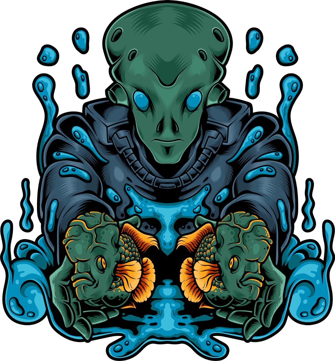 Vector Người Ngoài Hành Tinh & Cá. Khám phá “Asset 1208” – vector người ngoài hành tinh độc đáo, kết hợp hình ảnh sinh vật biển huyền bí. Hoàn hảo cho thiết kế áo thun, poster, và đồ họa game, mang đến phong cách ấn tượng và sáng tạo cho mọi dự án của bạn.