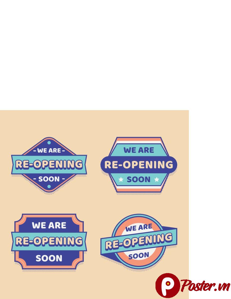 Với bộ sưu tập vector nhãn dán thông báo mở cửa lại, Poster.vn mong muốn hỗ trợ các doanh nghiệp một cách tối đa trong việc tái khởi động hoạt động kinh doanh, thu hút khách hàng và tạo dựng hình ảnh thương hiệu vững chắc. Hãy truy cập Poster.vn ngay hôm nay để khám phá và tải về những mẫu thiết kế độc đáo, sẵn sàng cho sự trở lại đầy ấn tượng của bạn!