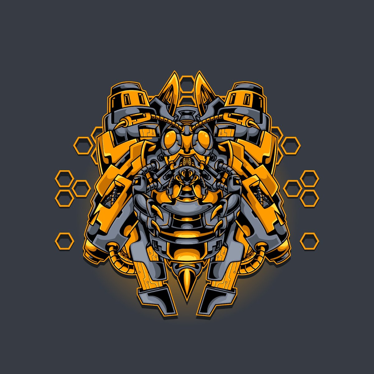 Vector Robot Ong Vàng Mạnh Mẽ. Khám phá mẫu vector robot ong vàng mạnh mẽ, thiết kế độc đáo và chi tiết tại Poster.vn. Hoàn hảo cho các dự án đồ họa game, áo thun, hoặc ấn phẩm quảng cáo cần sự mạnh mẽ, hiện đại và ấn tượng.