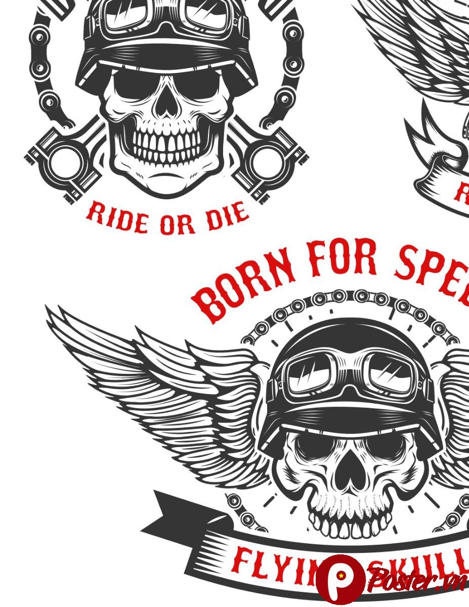 Vector Skull Biker: Born for Speed. Khám phá bộ sưu tập vector skull biker “Born for Speed” độc đáo tại Poster.vn. Thiết kế mạnh mẽ, cá tính, lý tưởng cho các dự án đồ họa liên quan đến xe máy, rock, hoặc phong cách đường phố.
