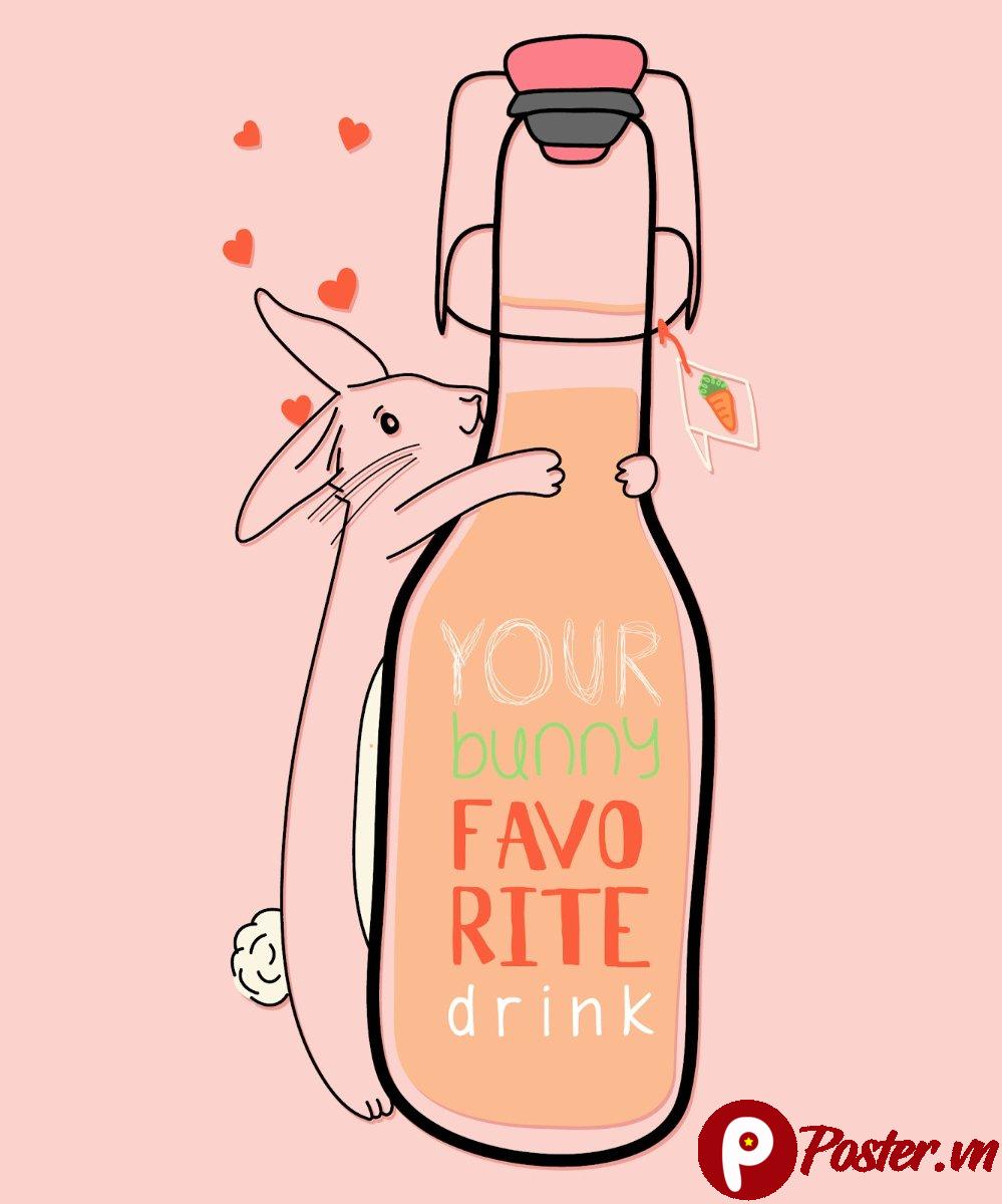 Hình ảnh chú thỏ đáng yêu đang ôm một chai nước ép với dòng chữ “Your bunny favorite drink” không chỉ thu hút ánh nhìn mà còn truyền tải thông điệp về sự tươi mới, vui vẻ. Đây là một thiết kế lý tưởng cho nhiều mục đích khác nhau, từ quảng cáo sản phẩm đồ uống, bao bì, đến các ấn phẩm dành cho trẻ em hoặc thậm chí là trang trí cá nhân.