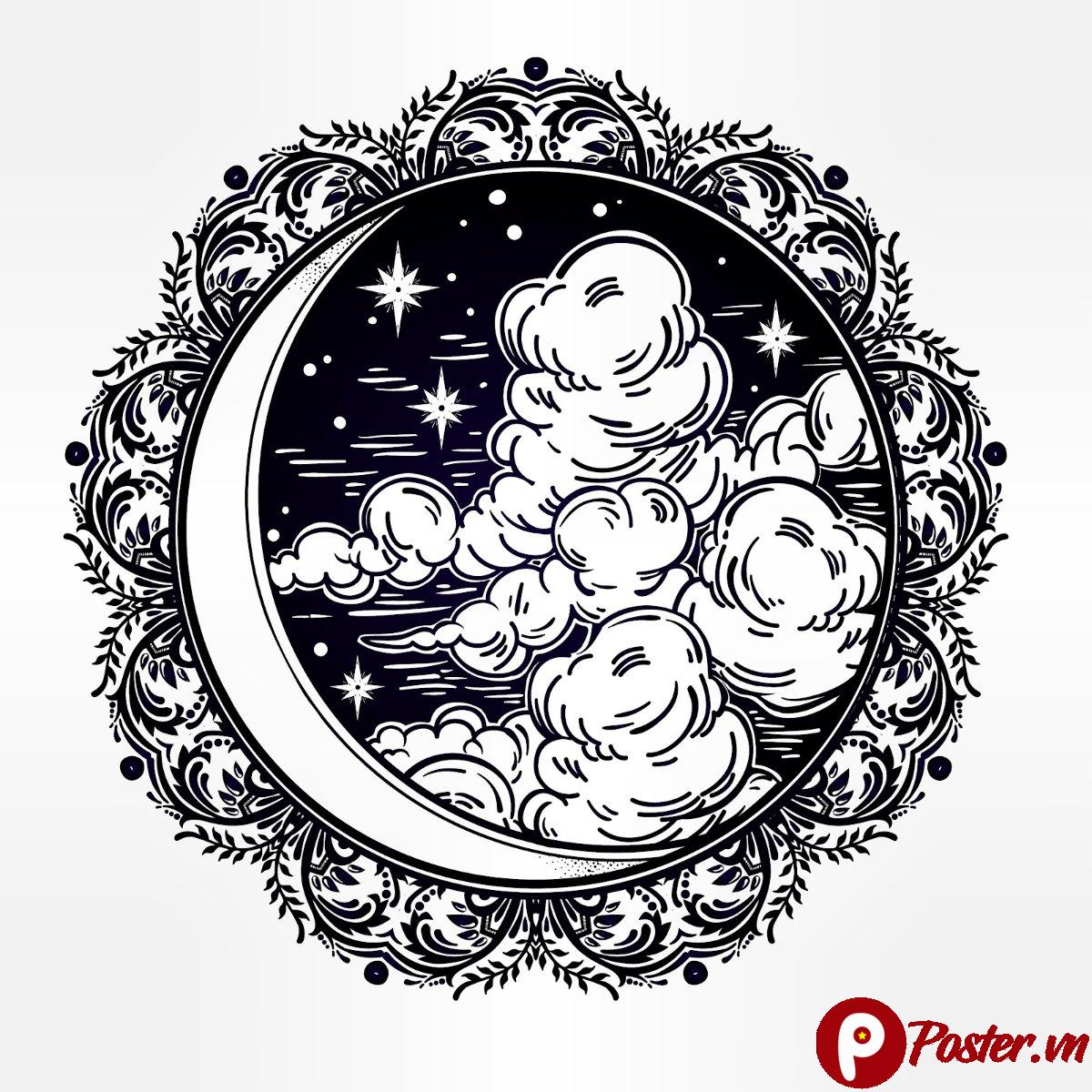 Vector Trăng Sao Mây Mandala Đen Trắng. Khám phá bộ sưu tập vector trăng sao mây đen trắng độc đáo tại Poster.vn. Thiết kế mandala tinh xảo, phù hợp cho nhiều dự án sáng tạo, in ấn và trang trí.